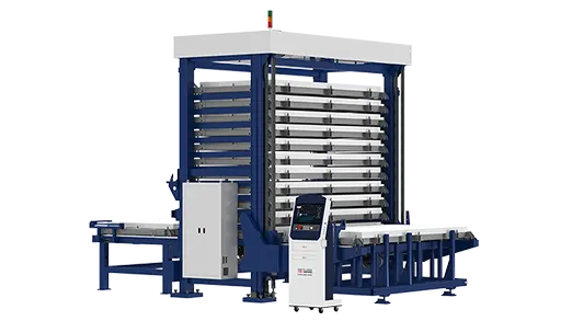 単層/二層構造の金属板保管タワーは、標準で10/15/20/30/40個の保管ベイを備えています。保管ベイ数はカスタマイズ可能です。インテリジェント検知機能を搭載し、保管中の金属板の重量と高さを自動監視します。また、オーバーリミットアラーム機能により、ミスを防止します。