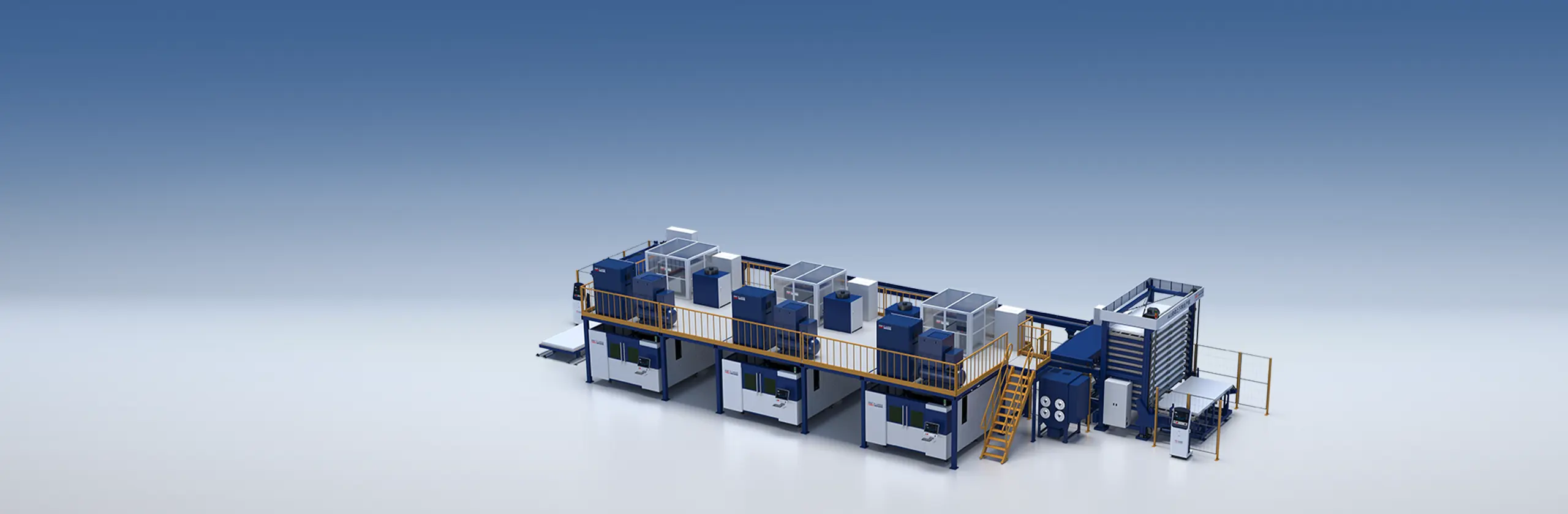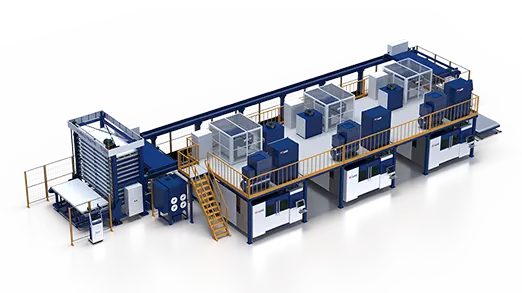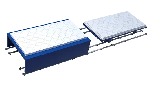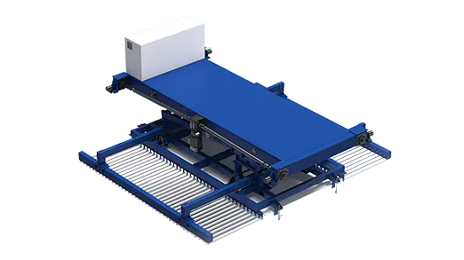 高低差のある二層式仕分けプラットフォーム。床面積を節約し、デュアルワークステーションで生産が可能。原材料プラットフォームの最大重量は3t。
