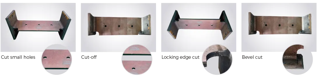 ● 切断、ベベルカット、ロッキングエッジカット、小穴加工を1台のマシンで行うことができます。